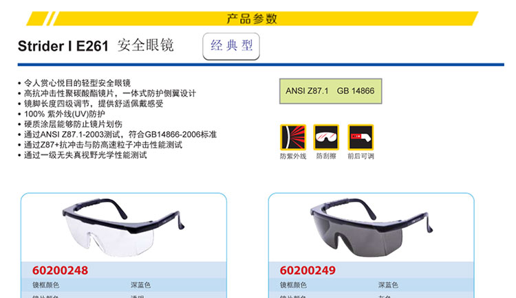 • 商品名称:羿科安全Strider I E261安全防护眼镜(不防雾)