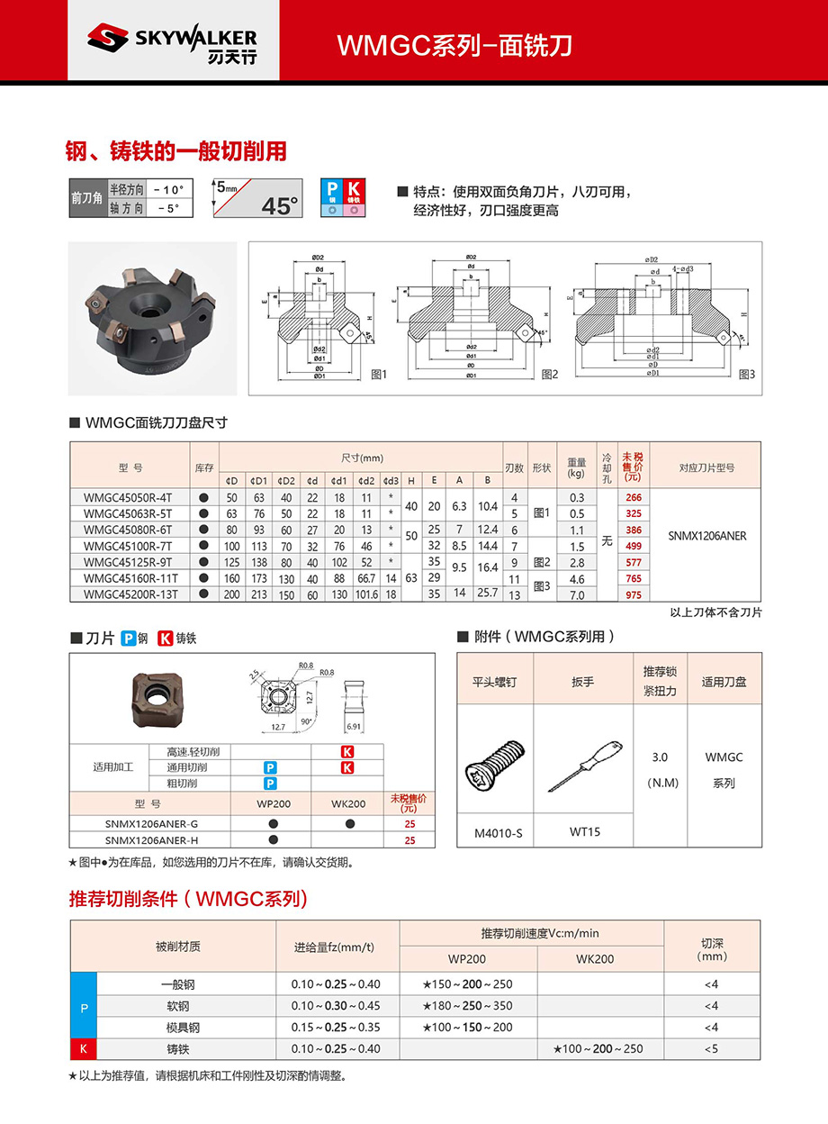刀具刃具  > 铣刀盘刀杆  > 面铣刀  >  刃天行  >  WMGC系列面铣刀刀盘